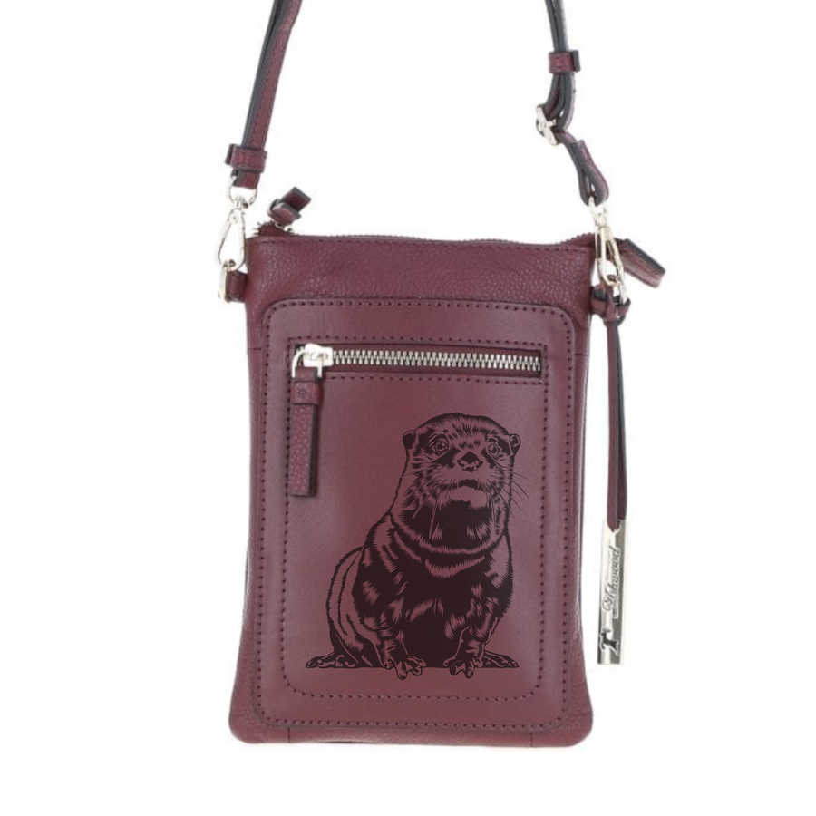 Personalised Otter Engraved Leather Crossbody Smart Phone Bag