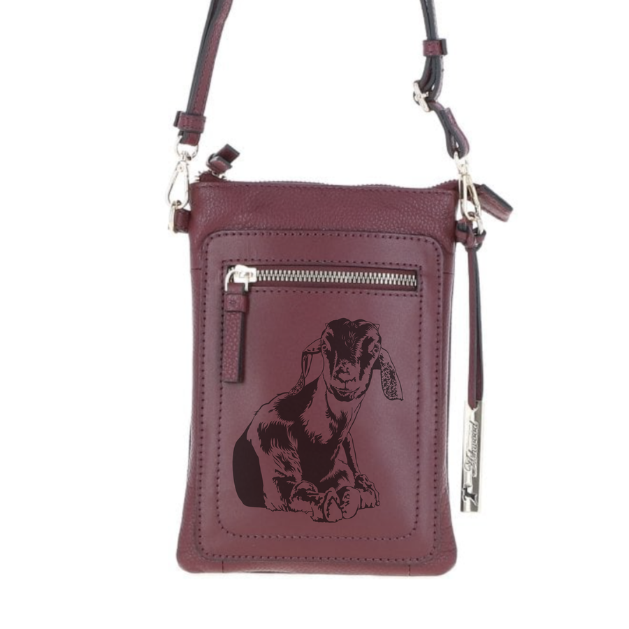 Personalised Sitting Goat Engraved Leather Crossbody Smart Phone Bag