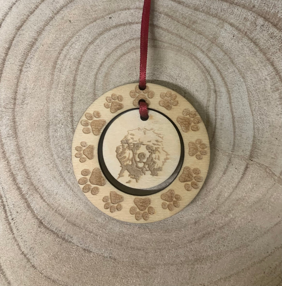 Dog Hanging Decoration with a Paw Wreath. A larger personalised version is also available. Whether it's a gift for yourself for your loved one these luxurious hanging decorations are bound to go down a treat.