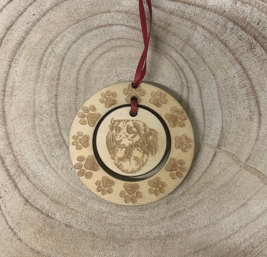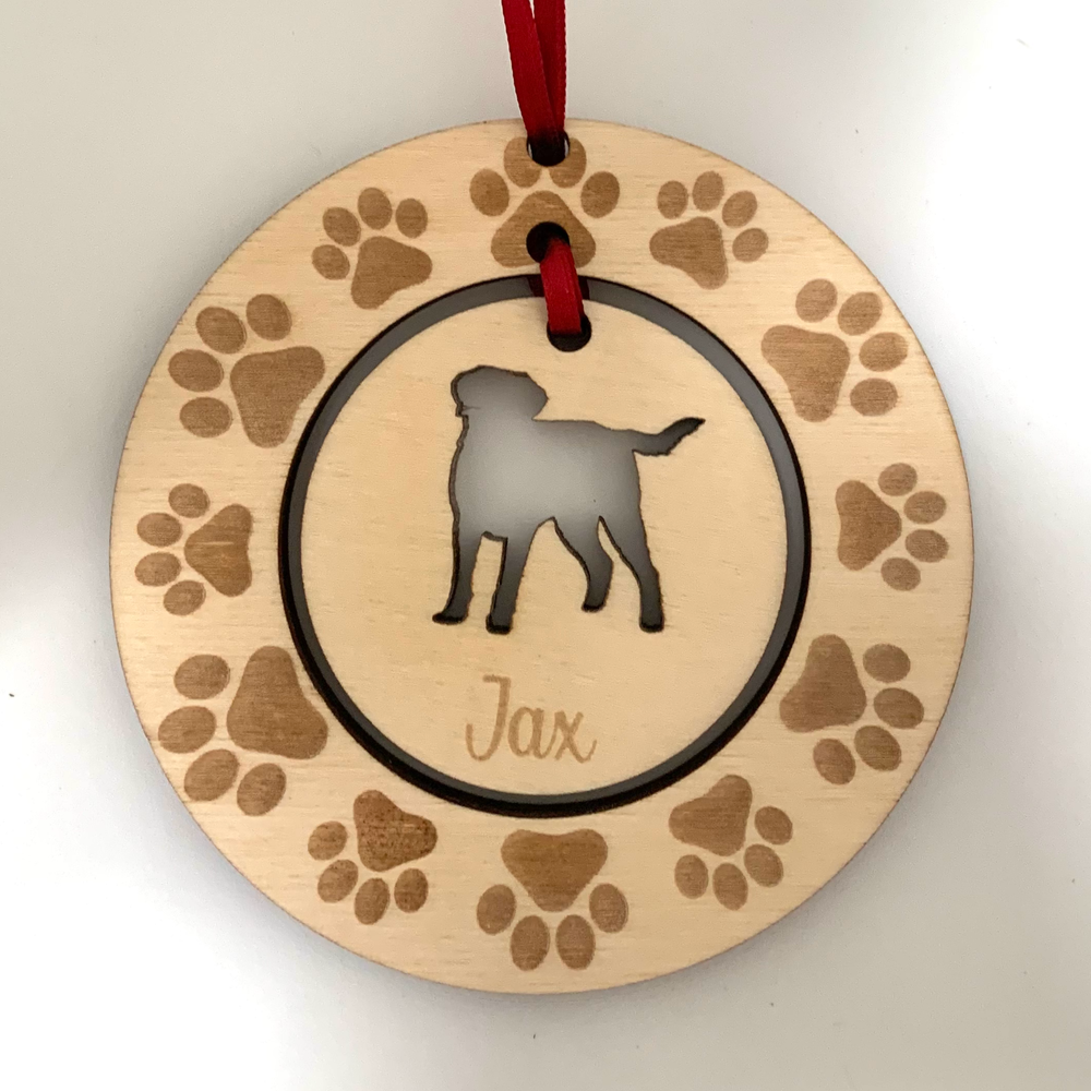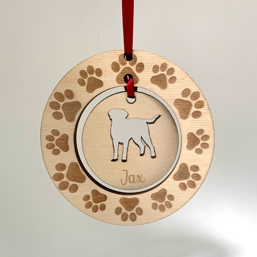 Dog Hanging Decoration with a Paw Wreath. A larger personalised version is also available. Whether it's a gift for yourself for your loved one these luxurious hanging decorations are bound to go down a treat.