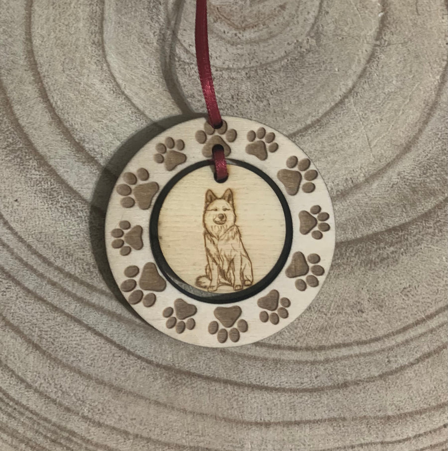 Canadian Eskimo Dog Hanging Decoration with a Paw Wreath. Whether it's a gift for yourself for your loved one these luxurious hanging decorations are bound to go down a treat.