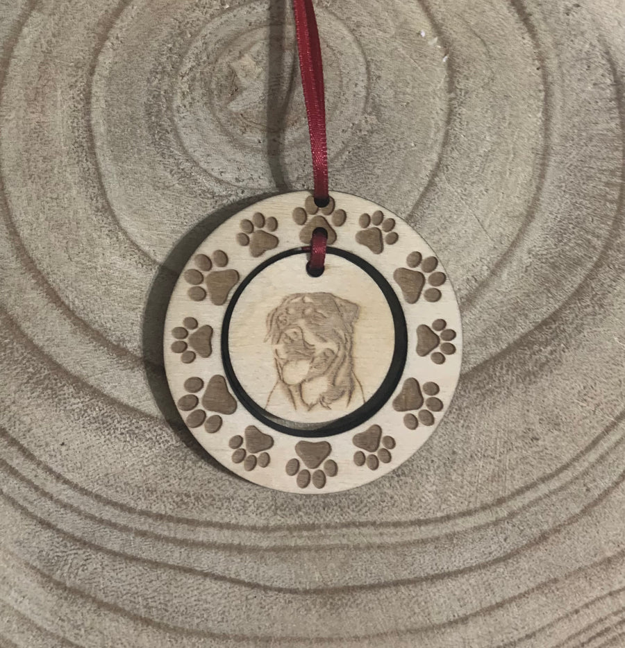 Rottweiler Hanging Decoration with a Paw Wreath. Whether it's a gift for yourself for your loved one these luxurious hanging decorations are bound to go down a treat.