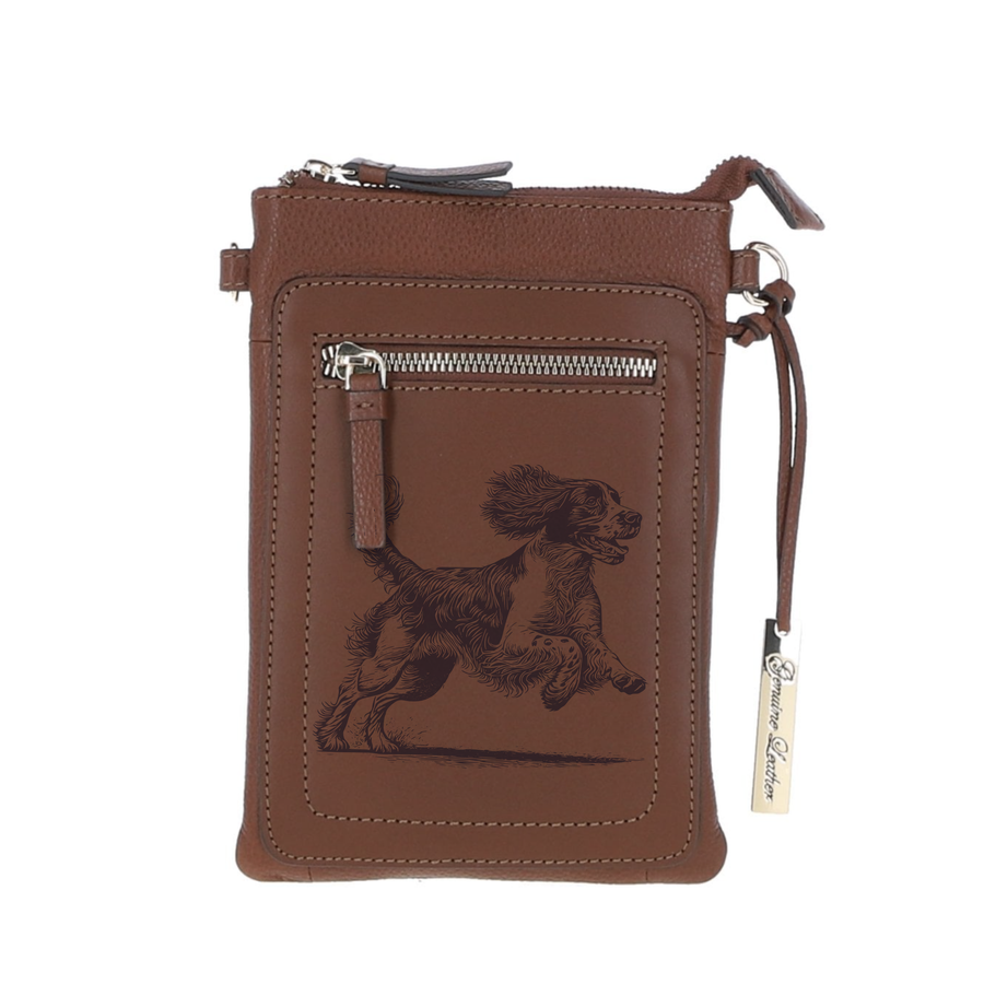 Personalised Welsh Springer Spaniel Engraved Leather Crossbody Smart Phone Bag