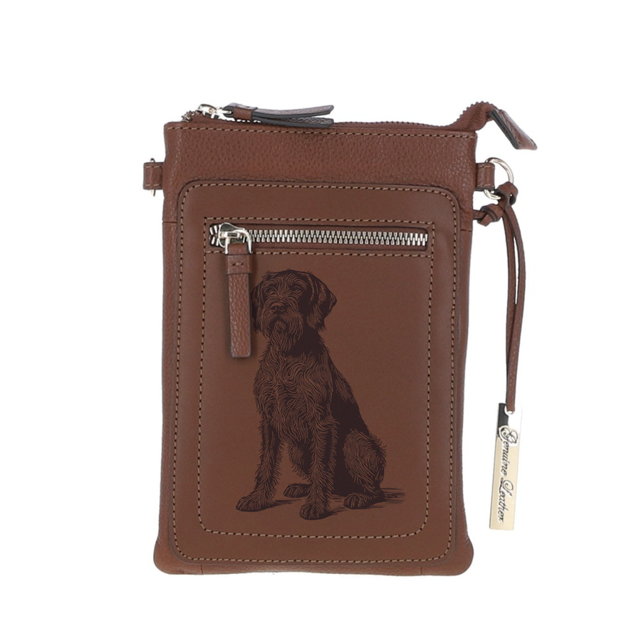 Personalised Weimaraner Engraved Leather Crossbody Smart Phone Bag