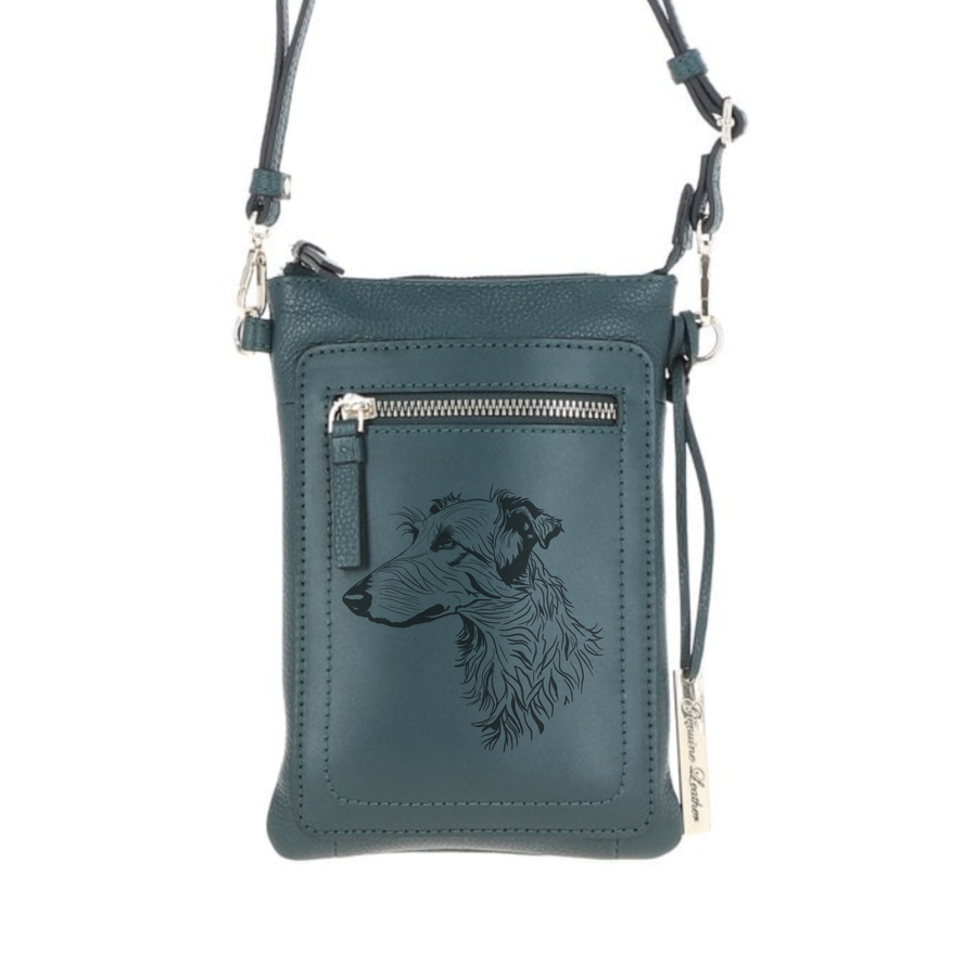 Personalised Deerhound Engraved Leather Crossbody Smart Phone Bag
