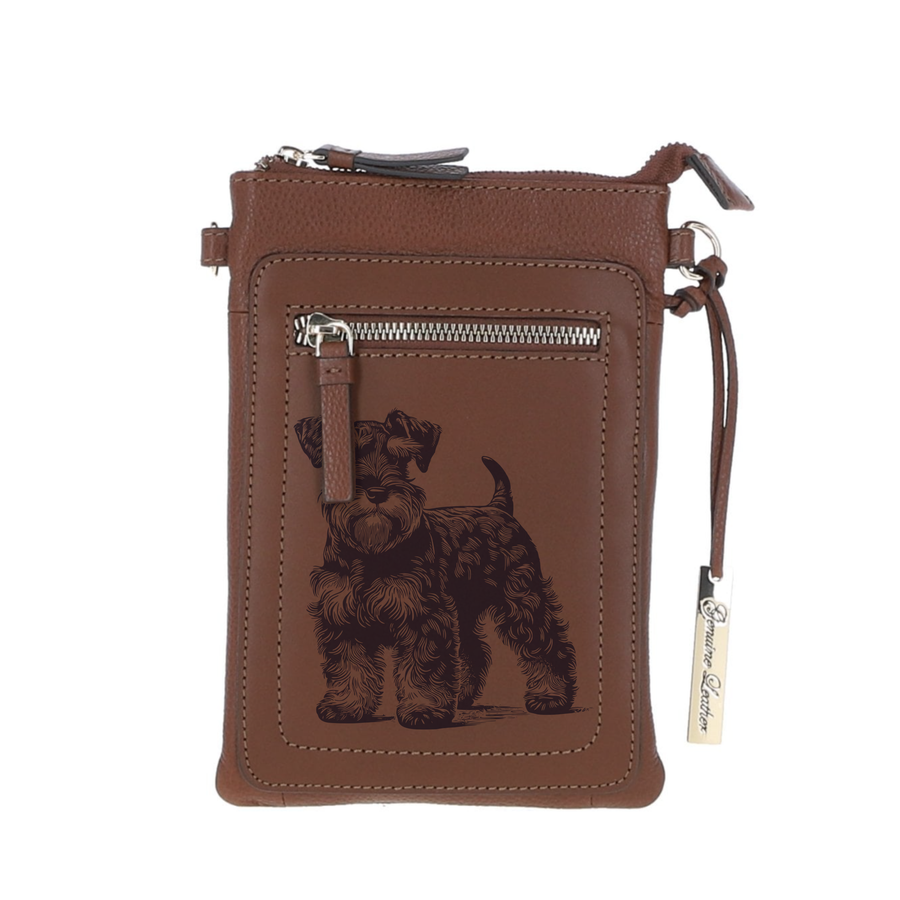 Personalised Miniature Schnauzer Puppy Engraved Leather Crossbody Smar