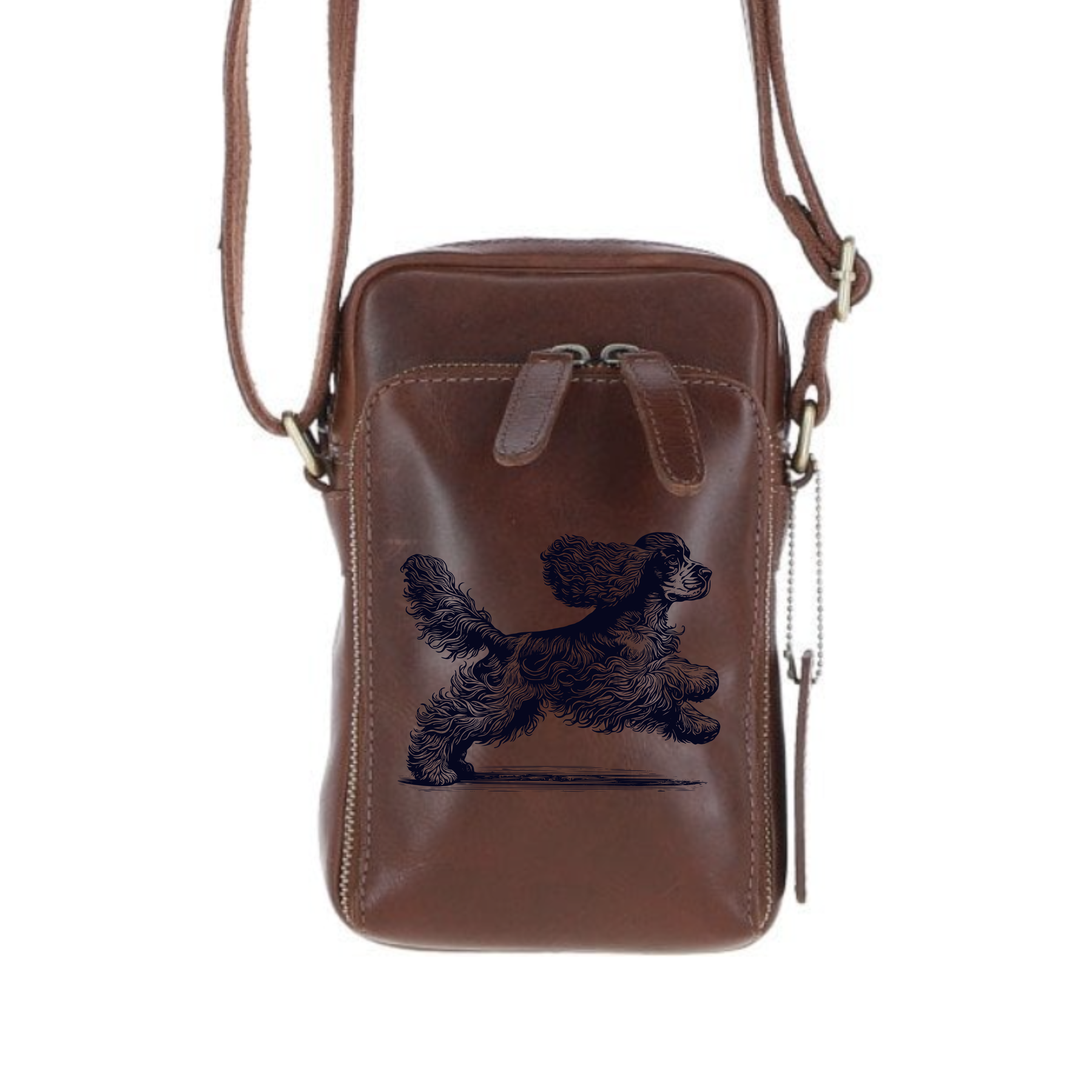 Personalised American Cocker Spaniel Running Leather Compact Crossbody