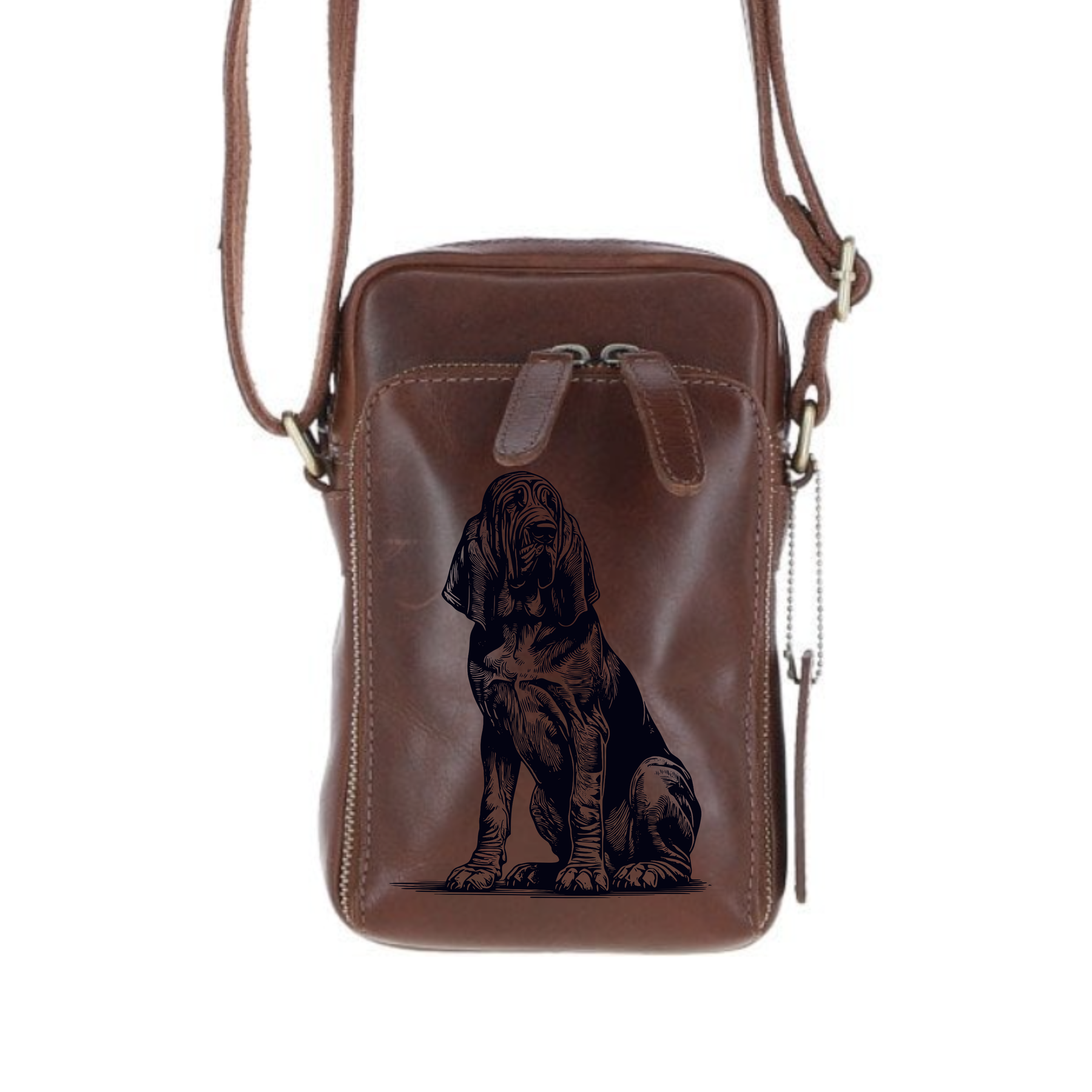 Personalised Bloodhound Sitting Leather Compact Crossbody Bag