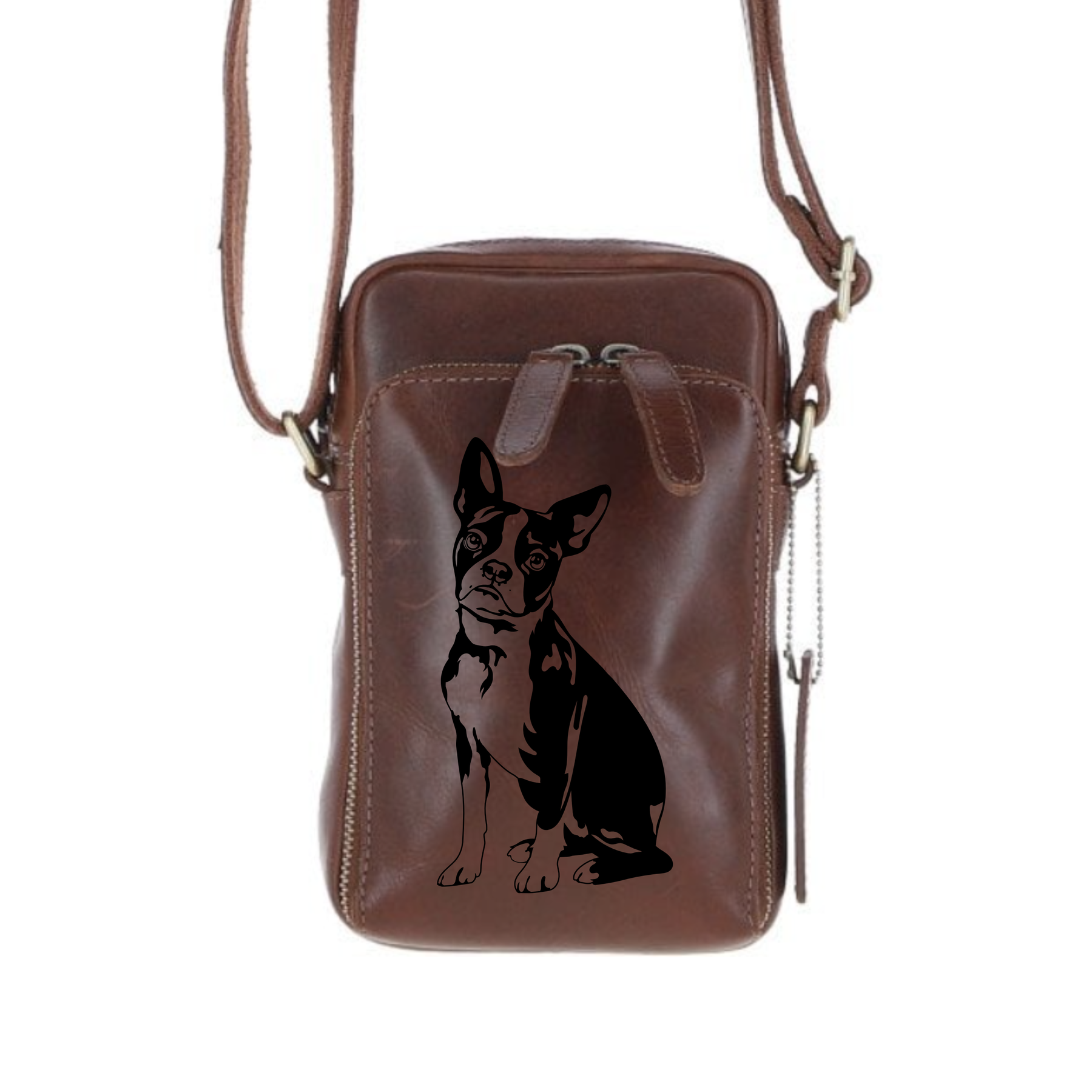 Personalised Boston Terrier Leather Compact Crossbody Bag