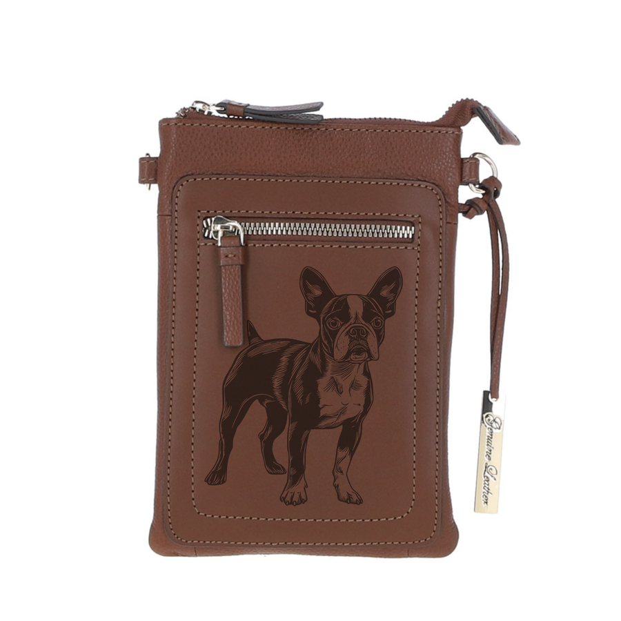 Personalised Boston Terrier Standing Engraved Leather Crossbody Smart