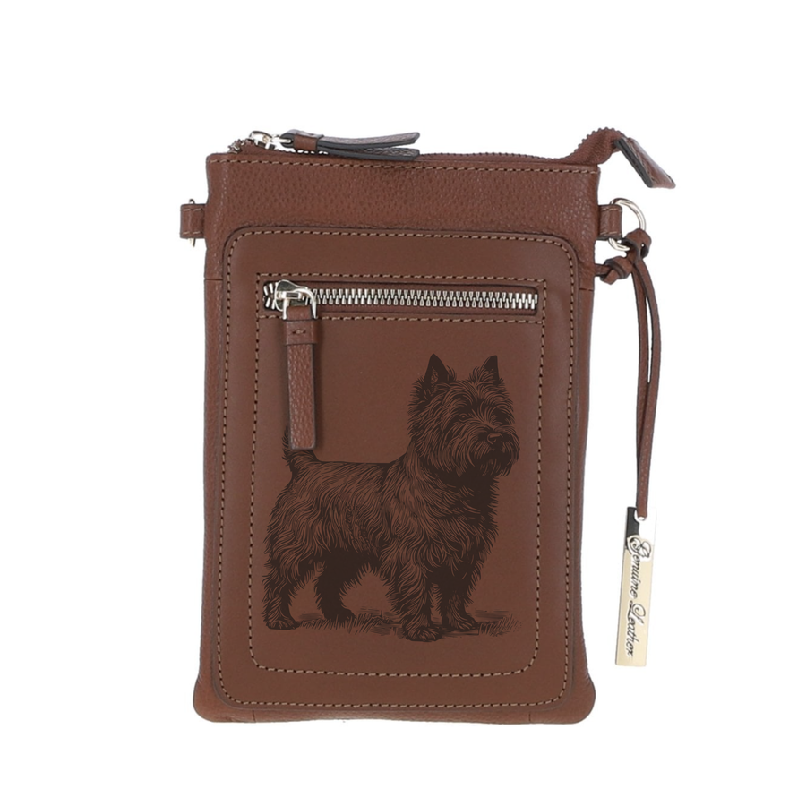 Personalised Cairn Terrier Standing R Engraved Leather Crossbody Smart